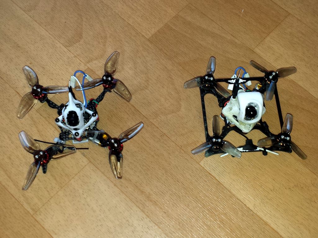 jpcheney Posté(e) il y a 1 heure Signaler Posté(e) il y a 1 heure Topic Attachments Un petit toothpick, mon nouveau délire Petite histoire J'ai commencé le FPV avec un Cetus X : très difficile en interieur (trop puissant pour moi), tres sympa en extérieur. Incassable, autonomie de 4-5 mn, du tout bon. Puis je me suis construit un 5 pouces et j'ai compris ce que "locked" voulait dire. J'ai de moins en moins piloté le Cetus X. J'ai un Jeno 3 pouces pour faire du (petit) freestyle mais quand ça crash, ça casse (que des hélices pour l'instant...). Mais j'avais des moteurs 1103 11000Kv en rab et une FC AIO JHEMCU ELVTX qui me servait pas. Je me suis construit un toothpick 2 pouces basé sur une frame Crux 3. Et révélation : ça vol super bien, bien mieux que le Cetus X. Tous les avantages d'une petite machine : - léger : peu d'inertie, peu de casse - léger : peu d'inertie, petit rayon de virage, aire de jeu petite - peu bruyant Je me faisais bien plaisir avec et j'ai découvert la frame Parallax Frite D’où ce nouveau drone ... Encore un ... Construction Rien de particulier, des soudures pas faciles, pad tout petits et mal placés ... mais j'ai choisi de garder les connecteurs moteurs (passs biennnn...), ça fait 12 soudures en moins Pour le reste, pas de problème jusqu’à l'installation des hélices : ça passe pas au niveau de la base de la canopy... 4 choix : - j'ai la meme frame en 3 pouces, pas top ... - je peux reprendre les moteurs et hélices de mon 2 pouces mais je perd l’intérêt de passer en 2.5 pouces - Je peux surélever la canopy mais c'est pas beau - je peux creuser pour trouver un canopy qui marchera : mon choix J'installe la nouvelle canopy et tout marche. Installation de l'antenne ELRS sous un bras, du buzzer JHE20B sous un autre (je vole avec un buzzer sur TOUS mes drones, j'ai passé l'age de chercher un drone crashé dans les hautes herbes pendant des plombes ...) Test en interieur : ça vole, moteurs et hélices dans le bon sens Tests en extérieur : bon sang que ça vole bien : mêmes sensations que le 2 pouces. autonomie de dingue (+10mn de vol contre 6mn30 pour le 2 pouces avec des lava 2 580mAh, va falloir que je commande de nouvelles batteries, 10mn, c'est long ... ). Bref , mon nouveau drone de petite taille !!! Quelques images La bete Sur la balance Le 2.5 pouces a gauche et le 2 pouces a droite Pour comparer les tailles, de gauche a droite, Jeno 3 , Frite 2.5, Crux 2, et Souce One 5 pouces J'ai encore une frame Parallax Frite en 3 pouces, pour faire du "long range light" , vous me conseillerez quoi comme moteurs en 2S ? POIDS : 75 grammes Liste des composants Frame Parallax Frite 2.5 pouces 10 € FC JHEMCU ELVTX 64 € ESCs JHEMCU ELVTX Moteurs 4 x Happymodel 1103 8000KV 28 € Jeu d'hélices 2 x HQProp 2.5 x 2.5 x 3 4 € Caméra FPV Caddx Ratel Baby 2 27 € Émetteur vidéo JHEMCU ELVTX Antenne vTx JHEMCU ELVTX Récepteur radio JHEMCU ELVTX LiPo LiHV Lava 2 580mAh 26 € Prix total : 159 € 2 1