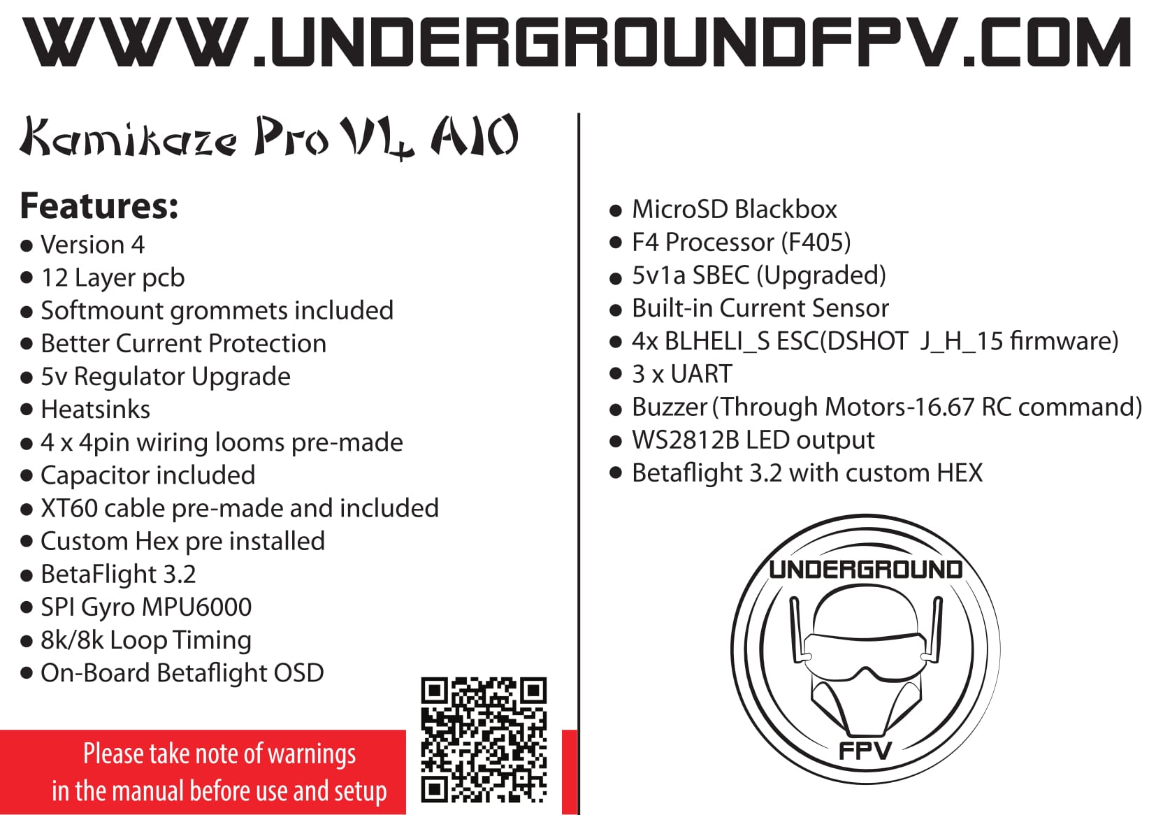 Motard Geek Posté(e) Janvier 3, 2018 Signaler Posté(e) Janvier 3, 2018 Vous connaissez les FC de chez Underground FPV ? Je suis tombé au hasard sur cette AIO avec ESC 50A et je trouve ça intéressant malgré l'encombrement de la carte ! Niveau specs et packaging pour 90€ c'est assez bluffant ! SPI Gyro softmount 32/32k Loop Timing On-Board Betaflight OSD F4/F7 Processor 5v3a SBEC (Upgraded) Built-in Current Sensor 4x BLHELI32 ESC 6 x UART Buzzer output WS2812B LED output Betaflight 3.3 with custom HEX Et c'est plutôt bien documenté avec un schéma de câblage complet : Ça me donne envie de refaire un 5' sous BF